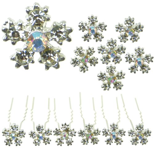 - Chaque épingle est surmontée d'un Motif en forme de flocon de neige en cristal blanc avec 1 cristal irisés au centre.