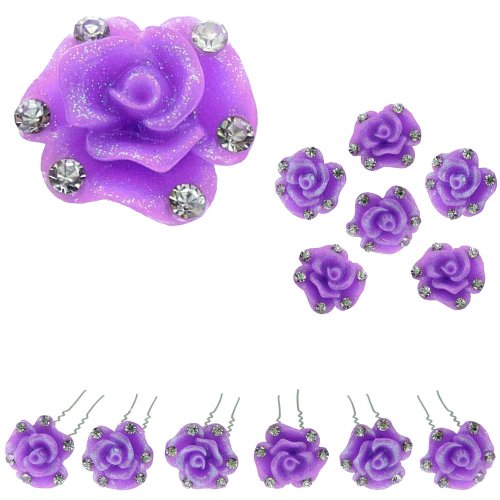 Ange Out Of The City - Lot De 6 Épingles Épingle Cheveux Pics Chignon neuves - Mariage Mariée Cérémonie demoiselle d'honneur danse - Cristal Blanc & Fleur VIOLET