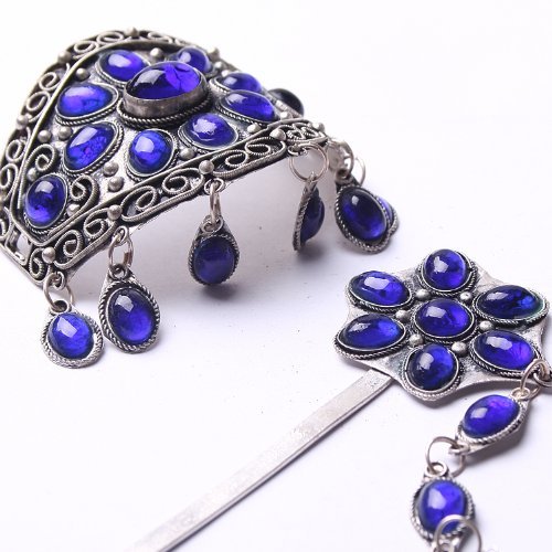 Yazilind Jade Blue Tibet Argent Bun Ponytail Pin baton Barrette Barrette clip Vtg