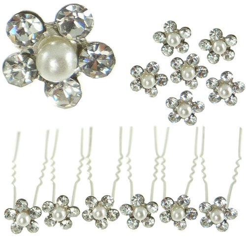 - Chaque épingle est surmontée d'une fleur de cristal blanc avec en son centre une perle blanche.