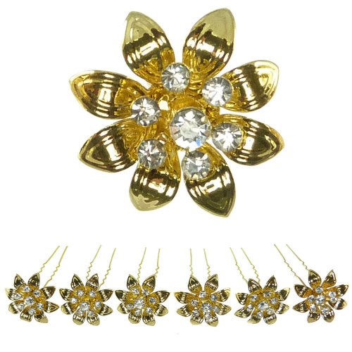Lot De 6 Épingles Épingle Cheveux Pics Chignon Cérémonie danse - Fleur Doré dorée Cristal Blanc. Coiffure Mariage Mariée Cérémonie danse