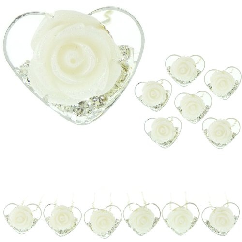 Ange Out Of The City - Lot De 6 Épingles Épingle Cheveux Pics Chignon neuves - Mariage Mariée Cérémonie demoiselle d'honneur danse - Coeur Cristal Blanc & Fleur