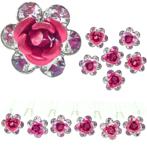 Ange Out Of The City - Lot De 6 Épingles Épingle Cheveux Pics Chignon neuves - Mariage Mariée Cérémonie demoiselle d'honneur danse - Cristal Blanc et Fleur rose vif