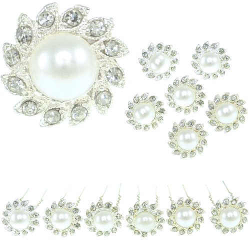 - Chaque épingle est surmontée d'une fleur de cristal blanc avec en son centre une perle blanc cassé.