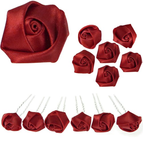Soyokay - Lot De 6 Épingles Épingle Cheveux Pics Chignon - Coiffure Mariage Mariée Cérémonie - Fleur - Rose En Satin ROUGE BORDEAUX: Amazon.fr: Parfum et Beauté