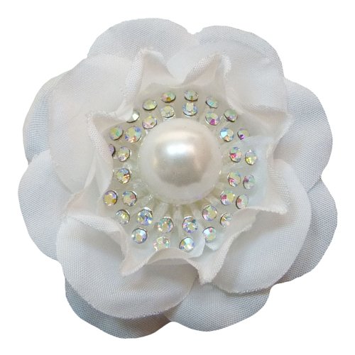 Ange Out Of The City - 1 Grande Fleur blanche Épingle Cheveux Pic Chignon Neuve - Mariage Mariée Cérémonie - Tissu Blanc Cristal Perle : Charmante épingle