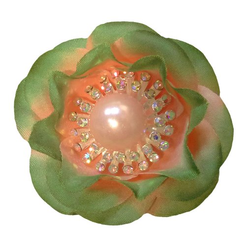 1 Grande Fleur Épingle Cheveux Pic Chignon Neuve Épingle Cheveux Pic Chignon Neuve - Mariage Mariée Cérémonie Tissu Rose Saumon Et Vert Cristal Perle