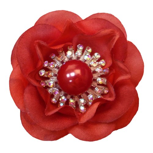 Ange Out Of The City - 1 Grande Fleur Épingle Cheveux Pic Chignon Neuve - Mariage Mariée Cérémonie - Tissu Rouge Cristal Perle Rouge Groseille: Amazon.fr: Parfum
