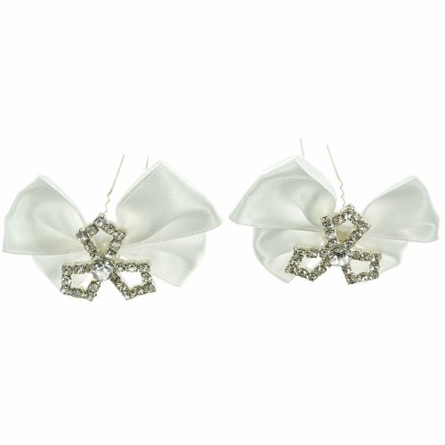 Ange Out Of The City - Lot De 2 Épingles Épingle Cheveux Pics Chignon - Coiffure Mariage Mariée Cérémonie danse - Grand Noeud En Satin Blanc cristal blanc
