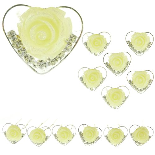 Ange Out Of The City - Lot De 6 Épingles Épingle Cheveux Pics Chignon neuves - Mariage Mariée Cérémonie demoiselle d'honneur danse - Coeur Cristal Blanc & Fleur Jaune Pâle